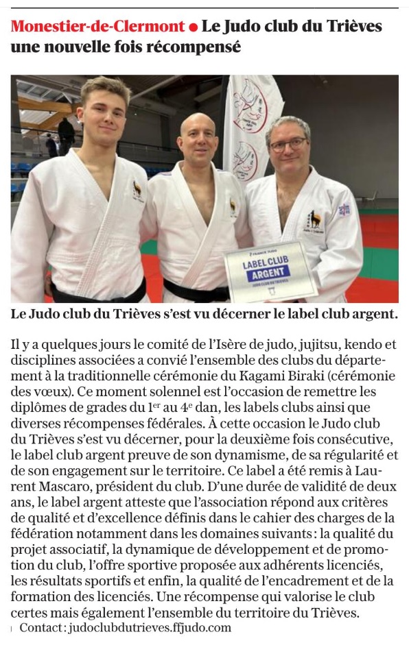 Le Judo Club du Trièves obtient le Label Argent pour la deuxième année consécutive.